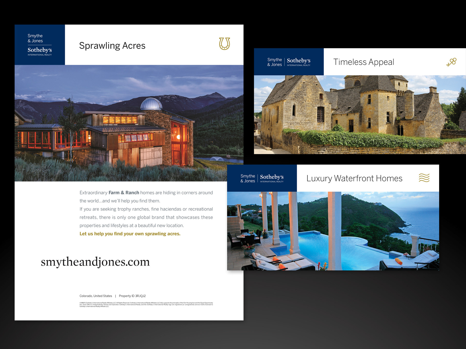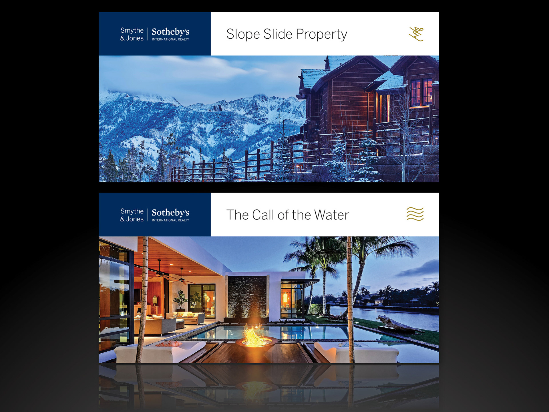 These are design templates that I created which are used by Sotheby's International Realty affiliates to promote luxury lifestyle properties in their locale markets.